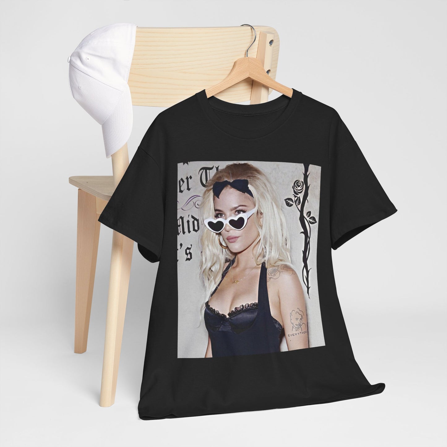 Designed for fans who appreciate Halsey's commanding presence and luxurious style, this t-shirt offers a unique and impactful piece of apparel. It’s perfect for everyday wear, music events, or simply celebrating the lasting legacy of a beloved pop queen with a touch of star power.