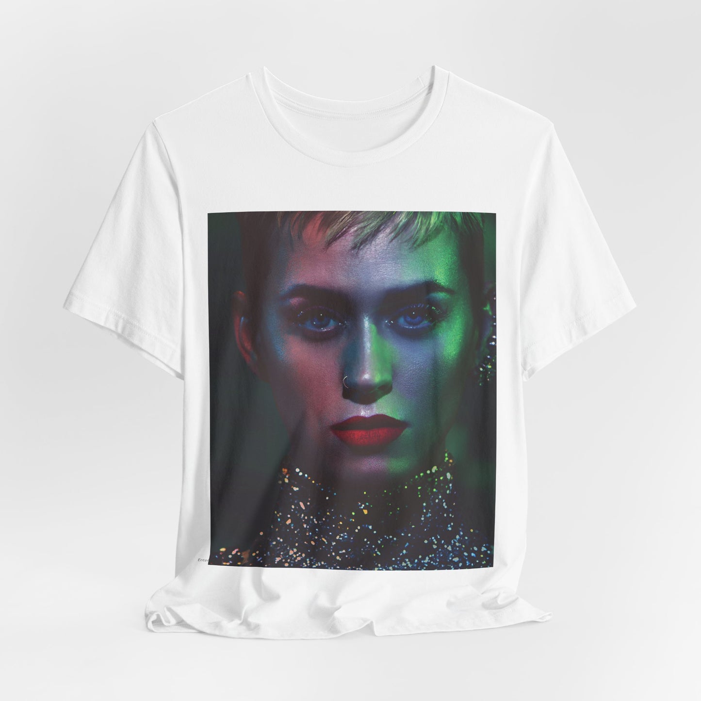 Designed for fans who appreciate Katy Perry's bold artistic expression and her commanding visual presence, this t-shirt offers a unique and impactful piece of apparel. It’s perfect for concerts, casual wear, or simply celebrating the enduring impact of a beloved pop queen with a modern flair.