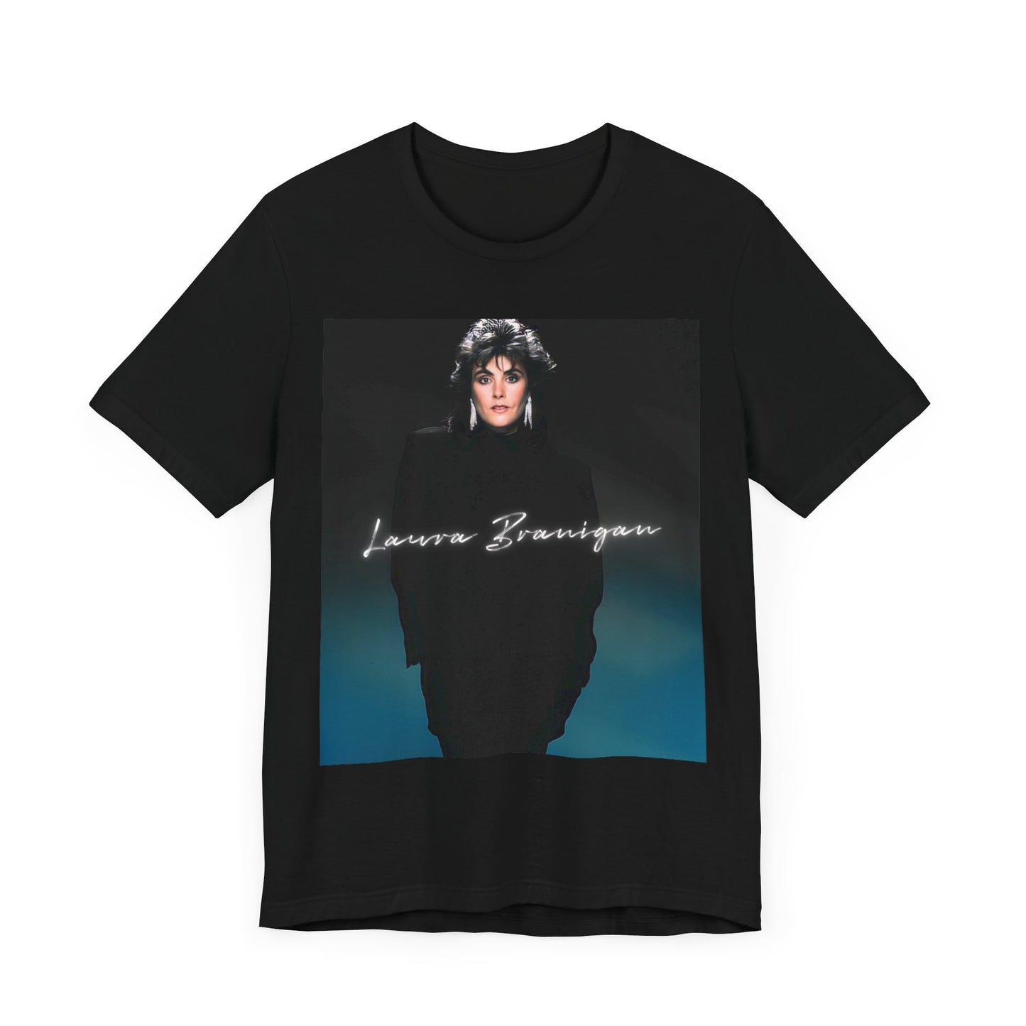 Designed for fans who appreciate Laura Branigan's powerful vocals and timeless charm, this t-shirt embodies the confident delivery and captivating artistry that characterized her music. It’s a perfect statement piece for everyday wear, music events, or simply celebrating the enduring impact of a beloved singer.