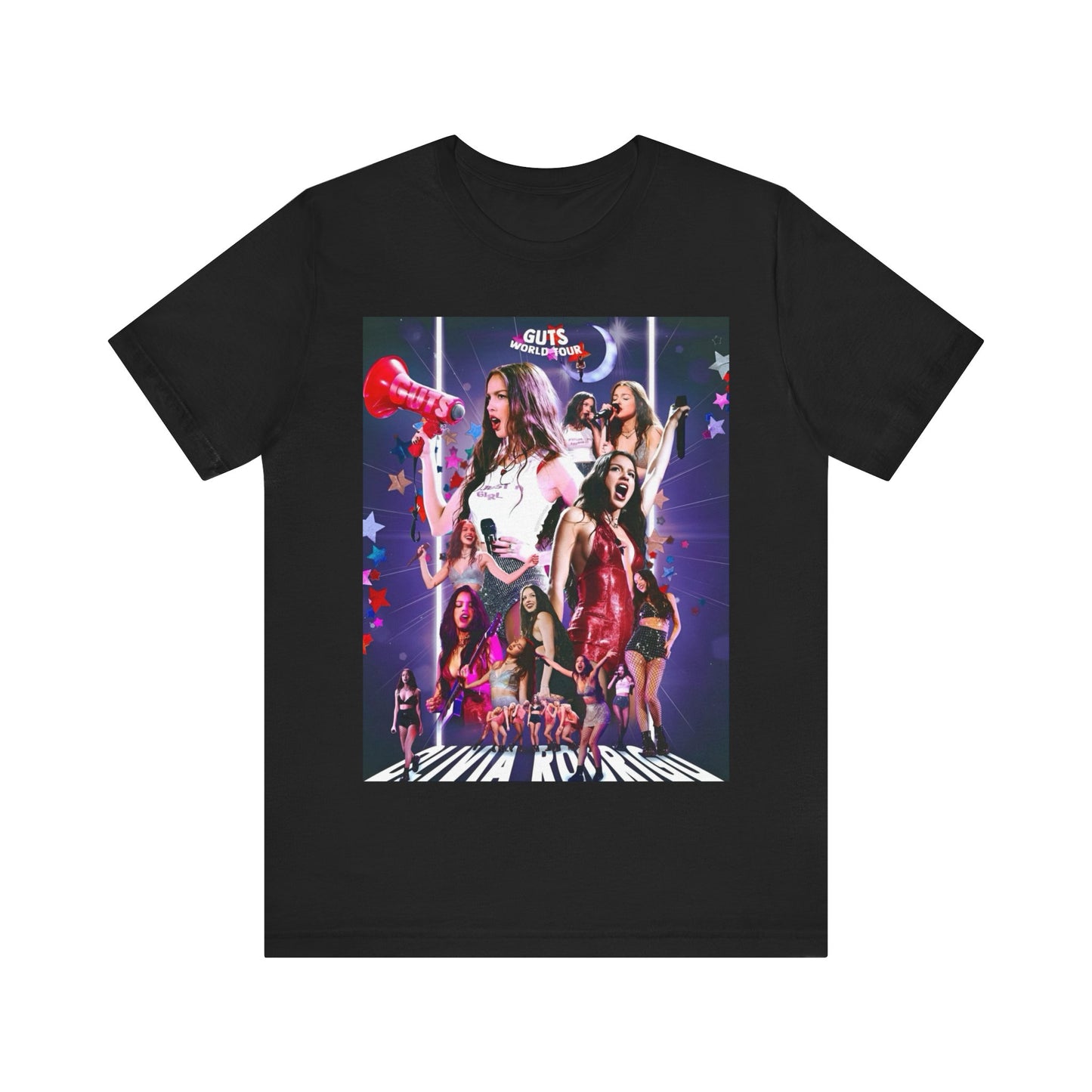 Designed for fans who appreciate Olivia Rodrigo's innovative sound and artistic flair, this t-shirt embodies her sophisticated and experimental charm. It’s a perfect statement piece for concerts, casual wear, or simply celebrating the enduring impact of a beloved and influential artist.
